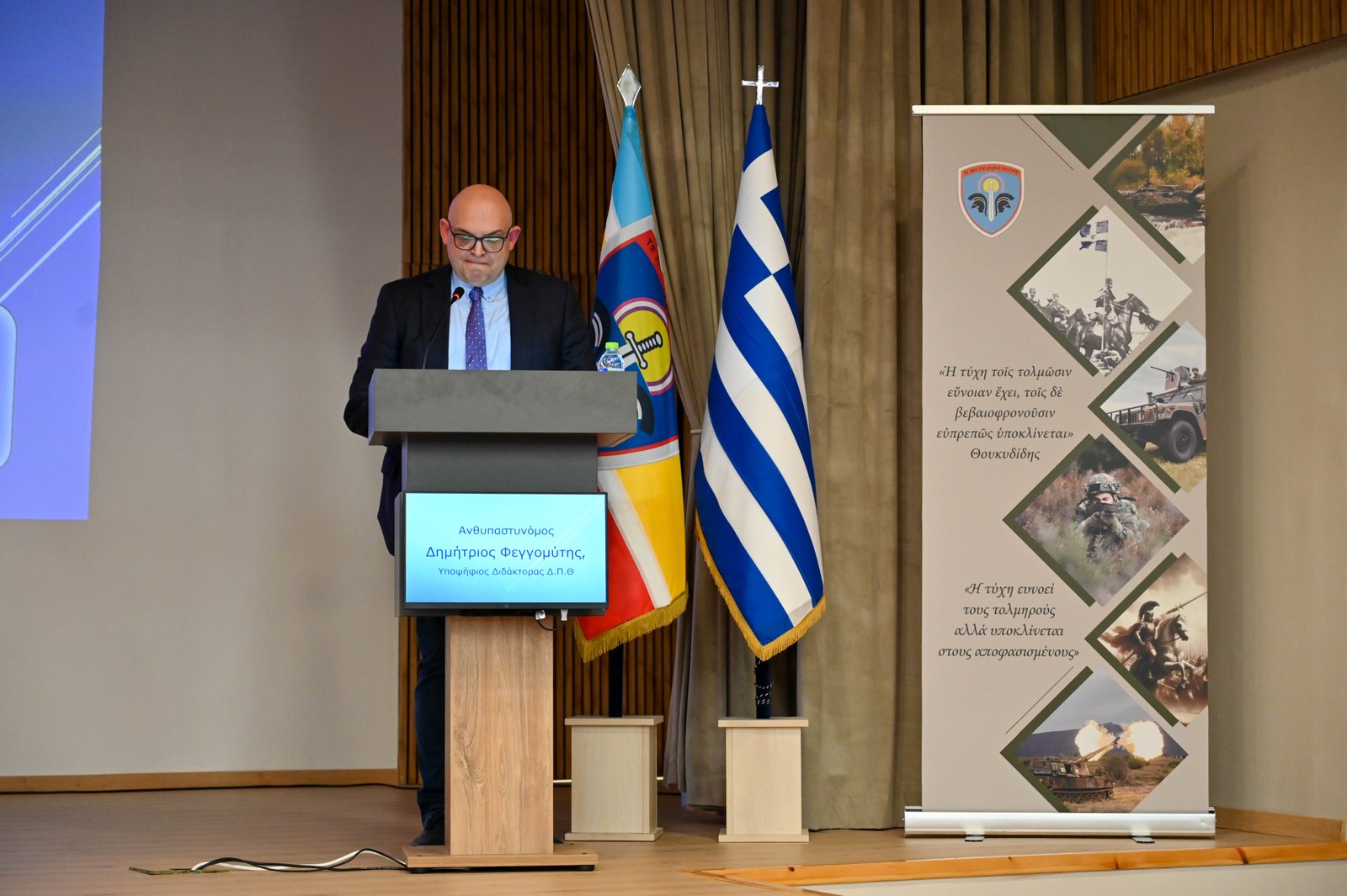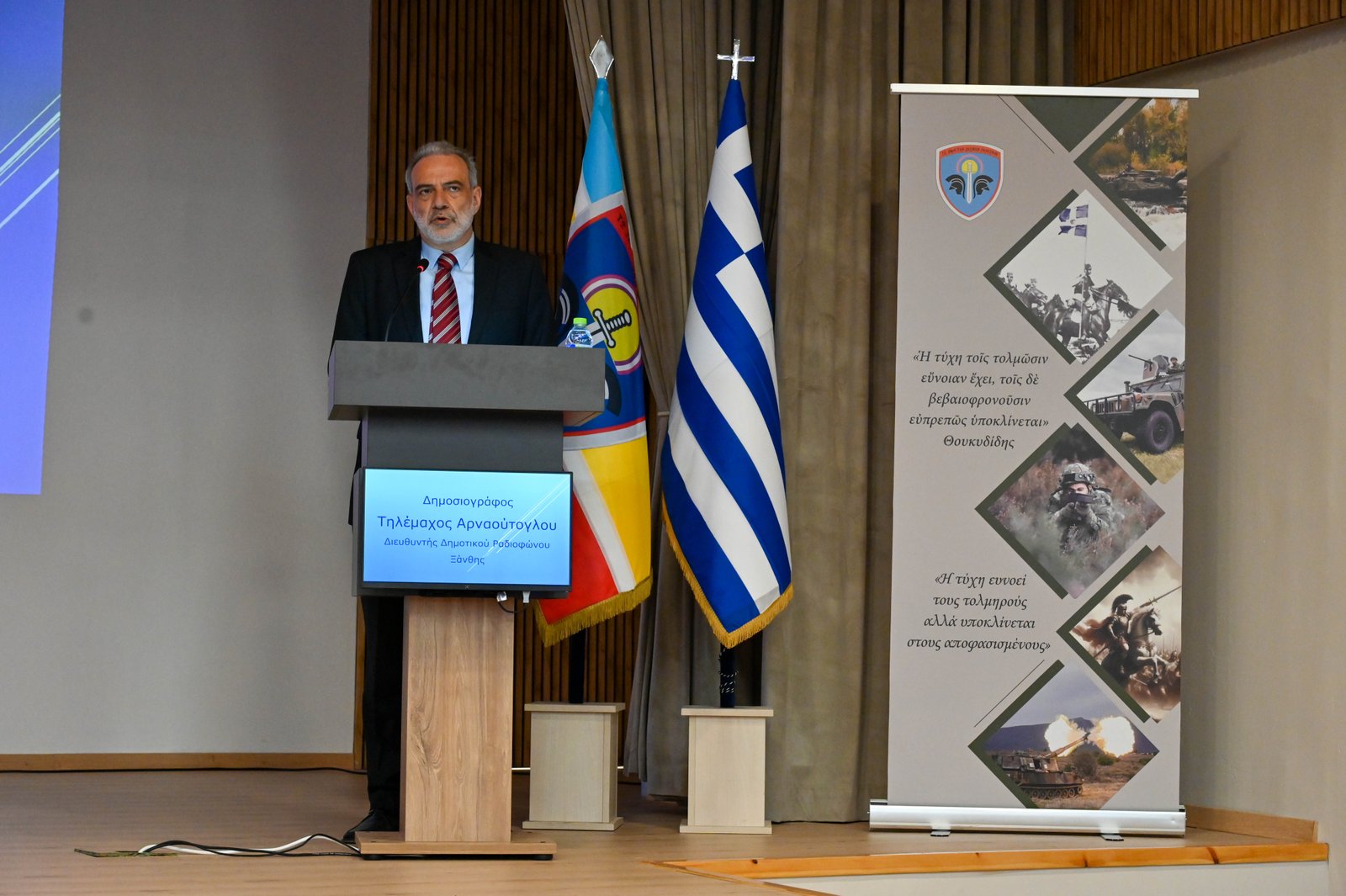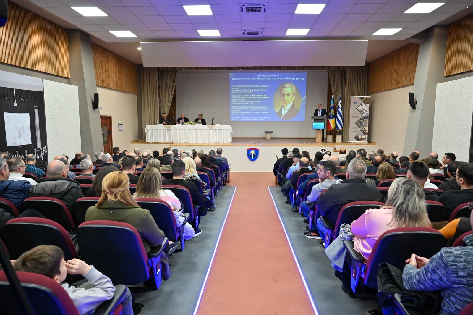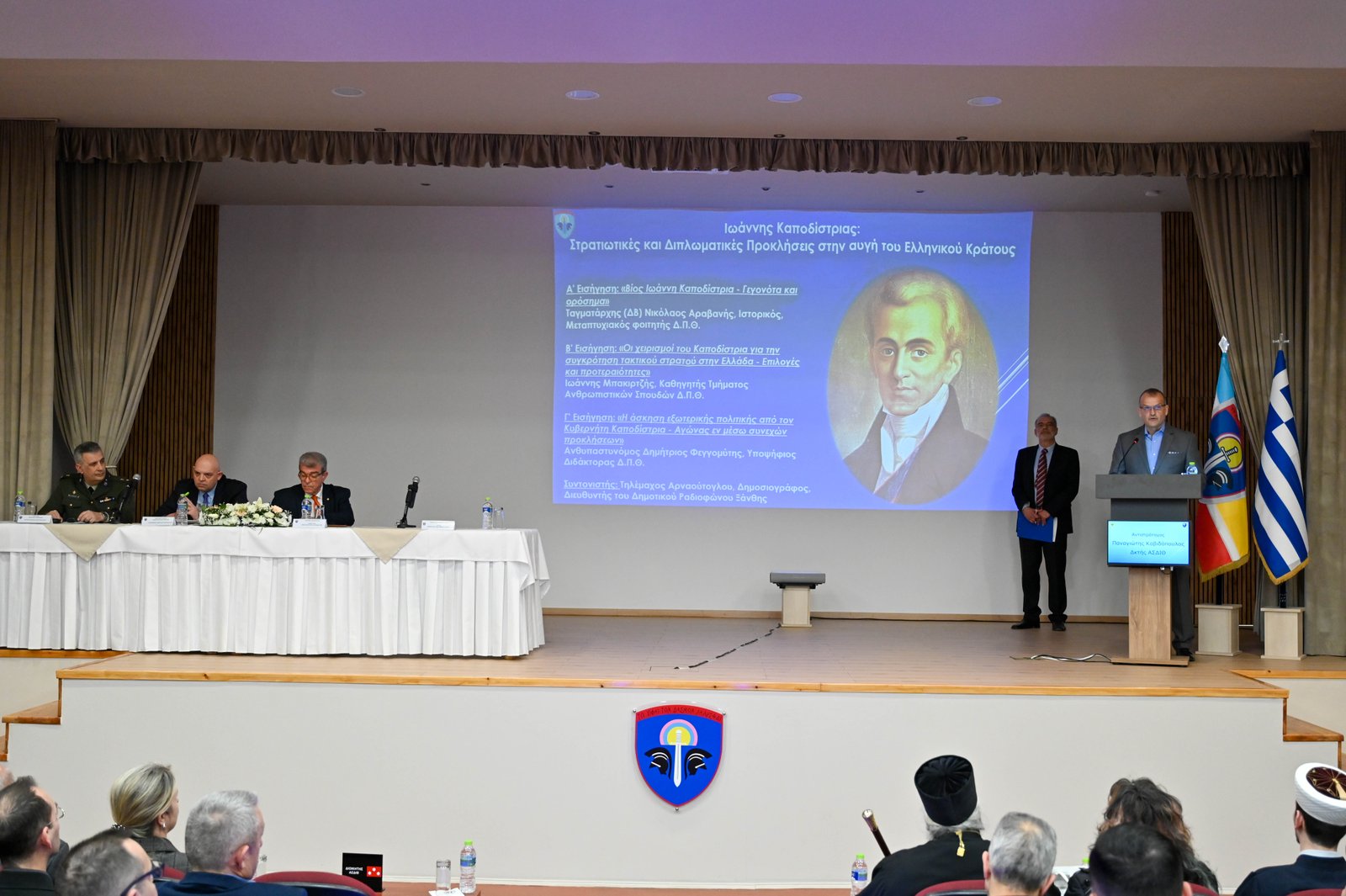 β. Ομιλία από τον Ταγματάρχη (ΔΒ) κ. Νικόλαο Αραβανή, μεταπτυχιακό φοιτητή του Δημοκρίτειου Πανεπιστημίου Θράκης, με θέμα «Βίος Ιωάννη Καποδίστρια – Γεγονότα και ορόσημα».γ. Ομιλία από τον Ανθυπαστυνόμο κ. Δημήτριο Φεγγομύτη, υποψήφιο Διδάκτορα Ιστορίας του Δημοκρίτειου Πανεπιστημίου Θράκης, με θέμα «Η άσκηση εξωτερικής πολιτικής από τον Ι. Καποδίστρια – Αγώνας εν μέσω προκλήσεων».