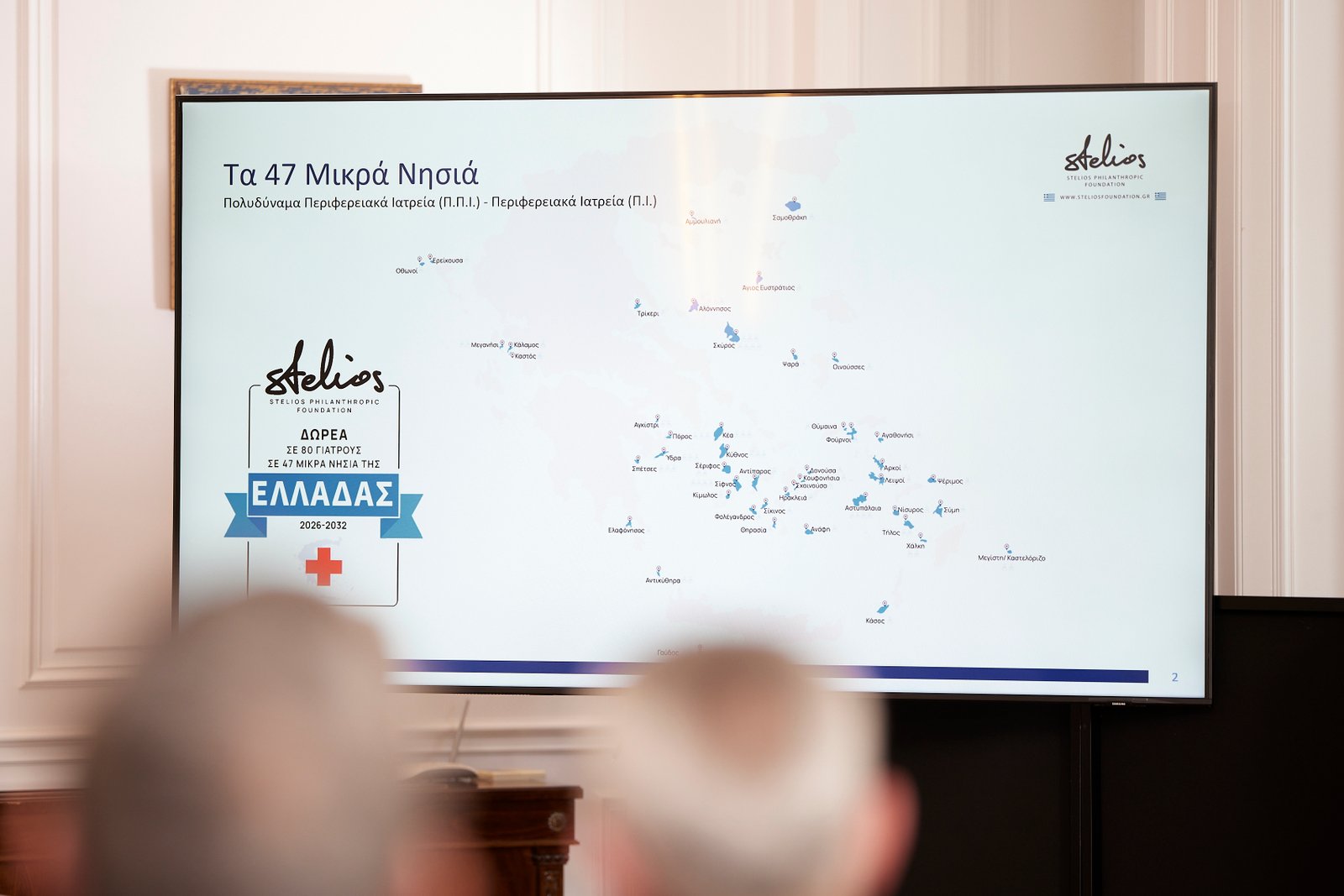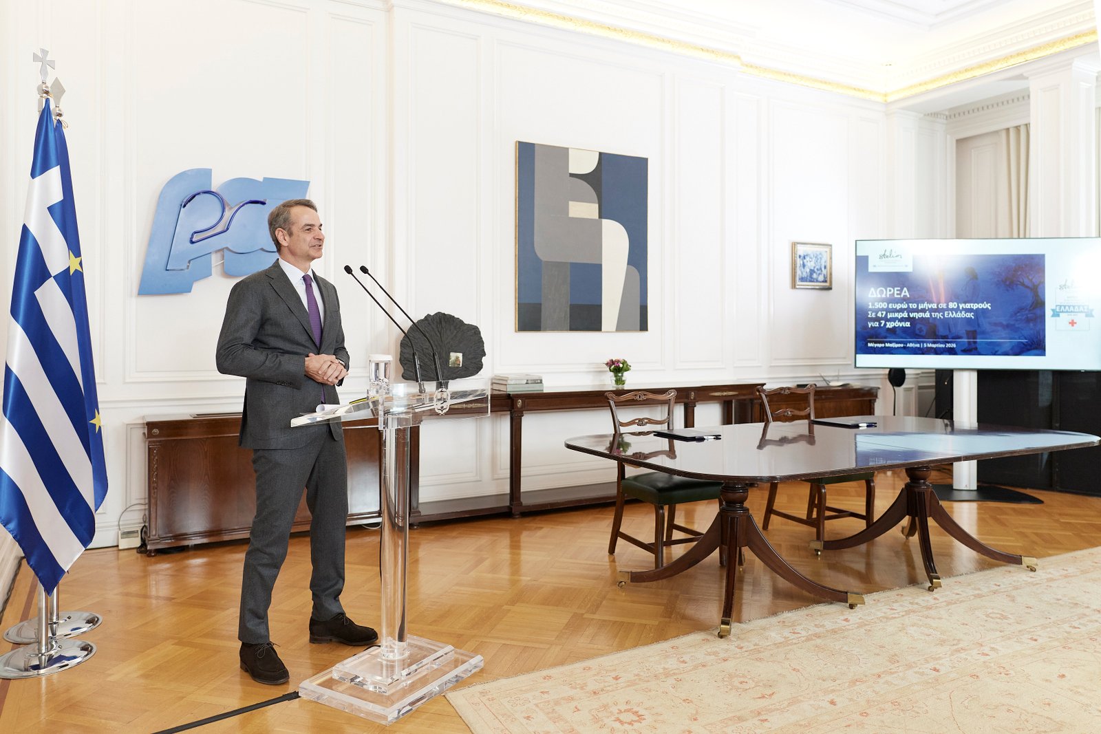 Στην εκδήλωση παρουσίασης της δωρεάς του Φιλανθρωπικού Ιδρύματος Στέλιος Χατζηιωάννου, που αποσκοπεί στην ενίσχυση των αποδοχών 80 γιατρών και αγροτικών γιατρών που υπηρετούν με φυσική παρουσία σε 47 μικρά νησιά της Ελλάδας, παρέστη το μεσημέρι της Πέμπτης, ο πρωθυπουργός Κυριάκος Μητσοτάκης.